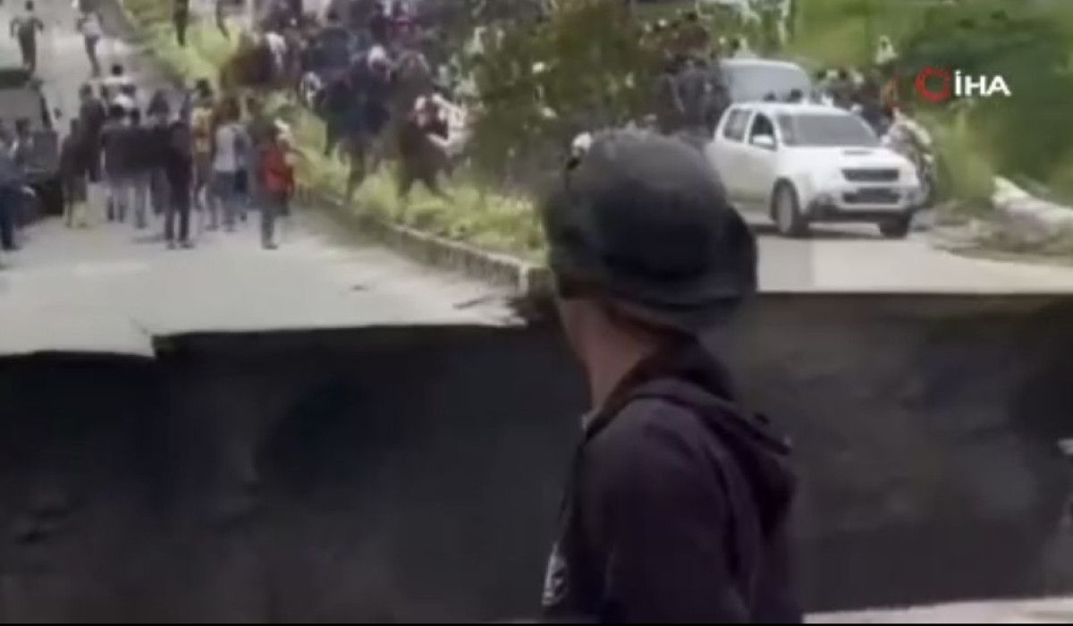 Üzerinde çok sayıda yaya ve taşıt bulunan 4 şeritli bir yolda çökme meydana geldi.