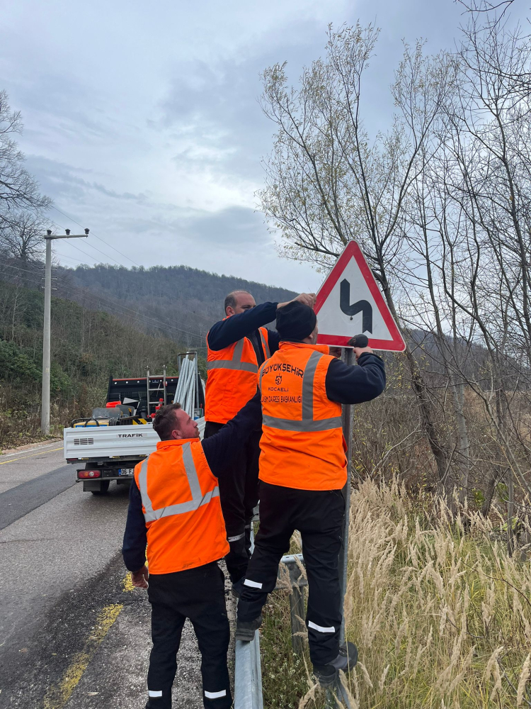 KOCAELİ (İGFA) – Kocaeli Büyükşehir Belediyesi, vatandaşların kış aylarında doğayla iç içe kar keyfini kesintisiz yaşayabilmesi için Kartepe zirve yolundaki çalışmalarını aralıksız sürdürüyor. Kış sezonunda zirveye ulaşımı etkileyebilecek olumsuz hava koşullarına karşı önlem alan ekipler, yol güvenliği ve ulaşımın sürekliliği açısından büyük önem taşıyan trafik levhalarını yenileyerek muhtemel sorunların önüne geçti. Bu kapsamda bozulan, devrilen veya görünürlüğü azalan tüm levhalar yenilenirken, kar direkleri de sağlamlaştırılarak tekrar yerine monte edildi.