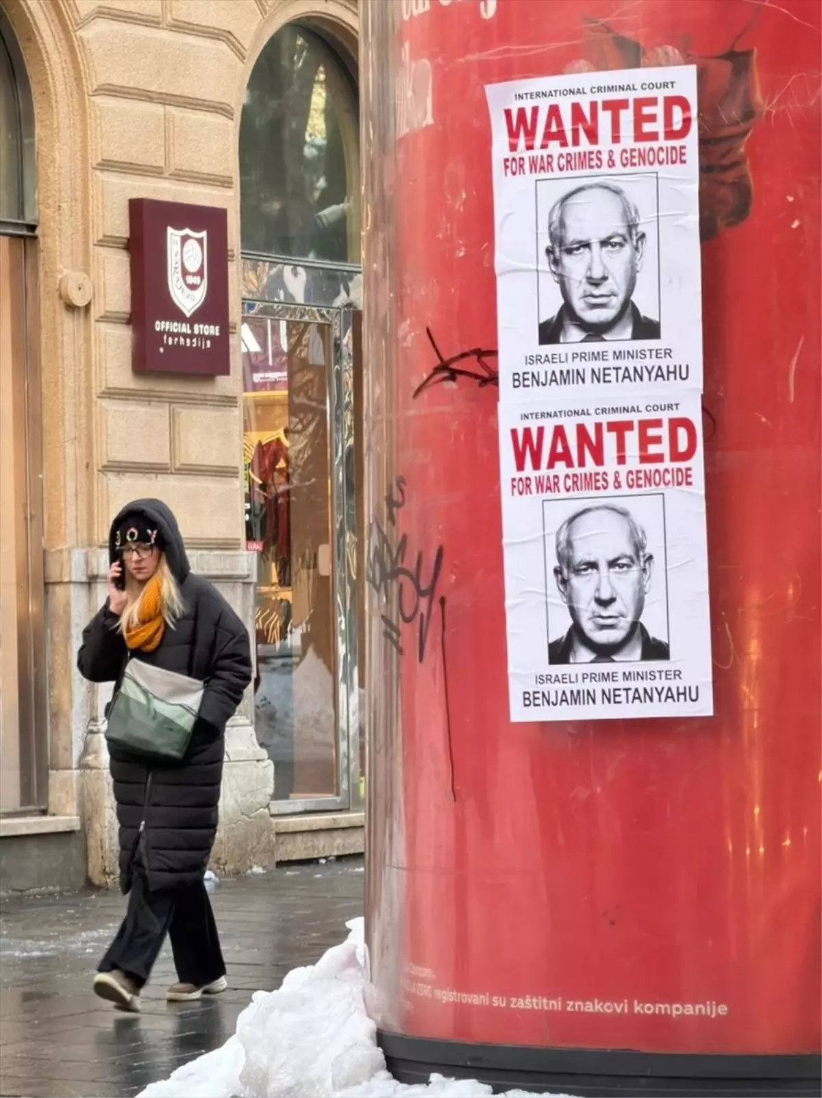 Bosna Hersek’in başkenti Saraybosna’da bir grup insan hakları aktivisti tarafından Başçarşı ve Ferhadiye caddeleri gibi turistlerin yoğun bulunduğu bölgelere “Binyamin Netanyahu, aranıyor, savaş suçları ve soykırımdan” yazılı afişler asıldı.