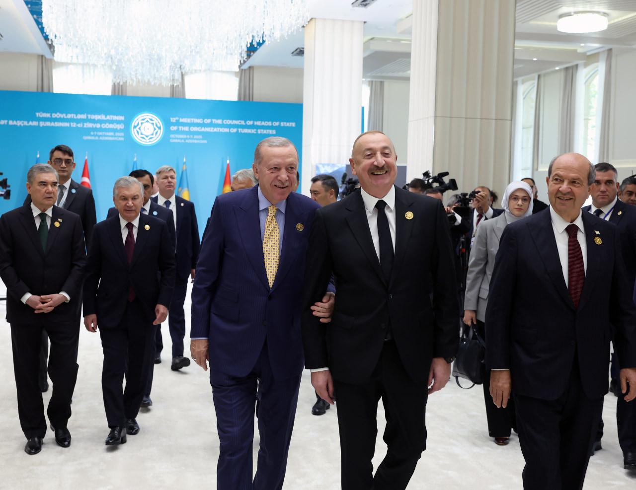 “Sayın Genel Sekreter, değerli kardeşlerim, sizleri en kalbi duygularımla, hürmetle, muhabbetle selamlıyorum. Türk Devletleri Teşkilatı’nın 12. Zirvesi vesilesiyle köklü tarihimizin izlerini taşıyan güzide şehir Gebele’de bulunmaktan büyük bir memnuniyet duyuyorum. Dönem başkanlığını devreden Kırgızistan Cumhurbaşkanı değerli kardeşim Sayın Caparov’a katkılarından dolayı teşekkür ediyorum. Aziz kardeşim Sayın Aliyev’e de müstesna ev sahipliğinden ötürü şükranlarımı sunuyor, dönem başkanlıkları için kendilerine üstün başarılar diliyorum.